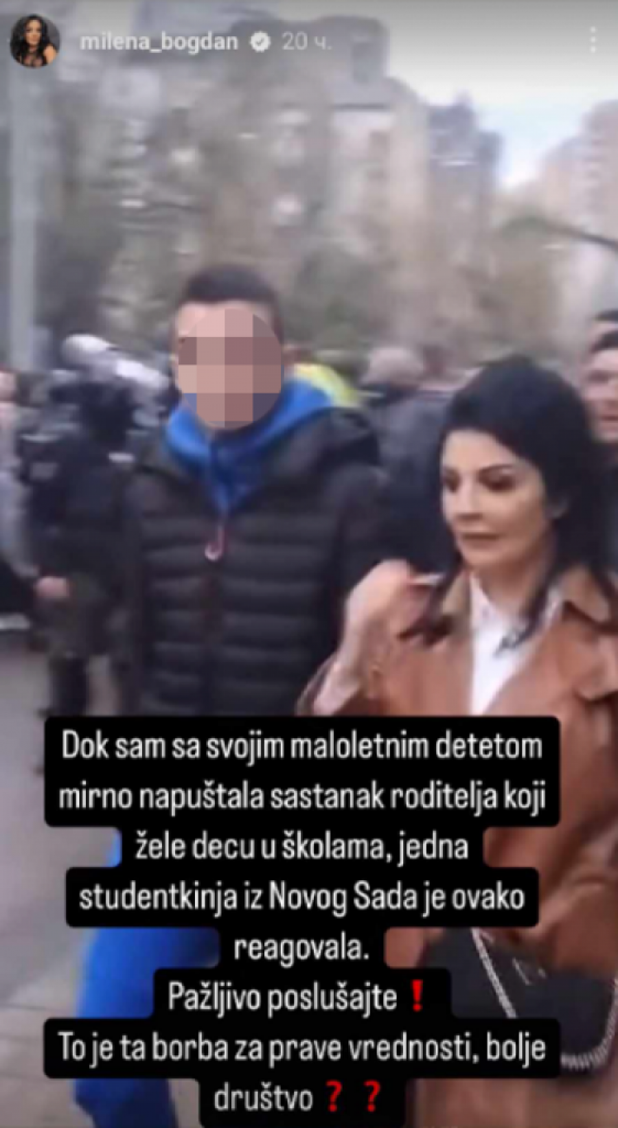 - Jedna studentkinja je ovako reagovala, dobro poslušajte. To je ta borba za prave vrednosti, bolje društvo - napisala je Milena Popović, a na snimku se čuje kako je ona sramno vređa.