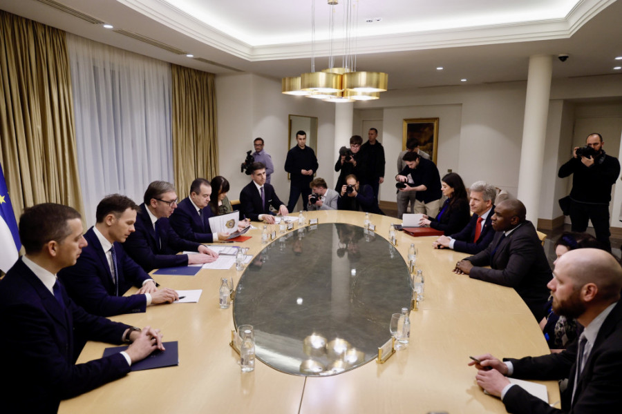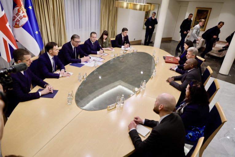 Predsednik Srbije Aleksandar Vučić sastao se danas sa ministrom spoljnih poslova Ujedinjenog Kraljevstva Velike Britanije i Severne Irske Dejvidom Lamijem.