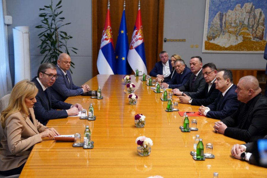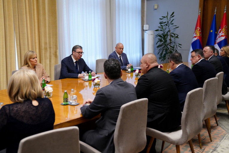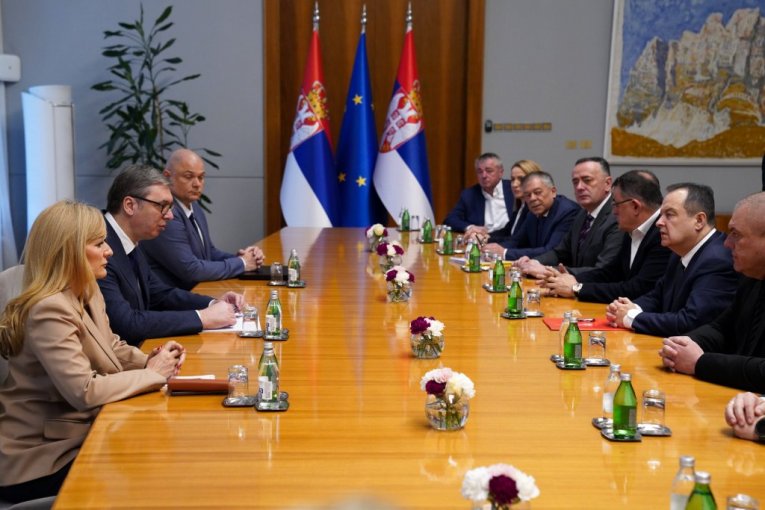 Predsednik Srbije Aleksandar Vučić nastavio je danas konsultacije o mandataru za sastav nove vlade u Palati Srbija razgovorom s delegacijom Socijalističke partije Srbije koju predvodi predsednik stranke Ivica Dačić.
