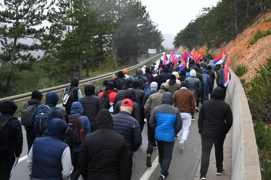 Oko 200 Srba iz svih krajeva AP Kosova i Metohije krenulo je jutros peške ka Beogradu kako bi u subotu 12. aprila stigli na veliki narodni skup koji se održava u srpskoj prestonici.