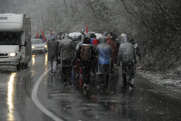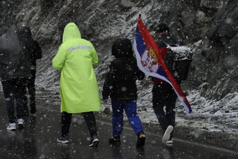 Srbi sa Kosova i Metohije, uprkos mećavi, kiši i snegu, krenuli su u nedelju ujutru peške za Beograd, na put dug skoro 300 kilometara, da bi u subotu 12. aprila prisustvovali velikom narodnom skupu u glavnom gradu Srbije.