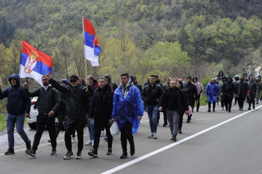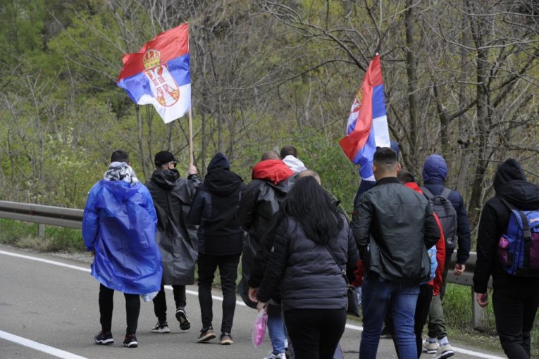 Oko 200 Srba iz svih krajeva AP Kosova i Metohije koji su krenuli pre dva dana pešice ka Beogradu da bi u subotu 12. aprila stigli na veliki narodni skup, koji se održava u srpskoj prestonici.