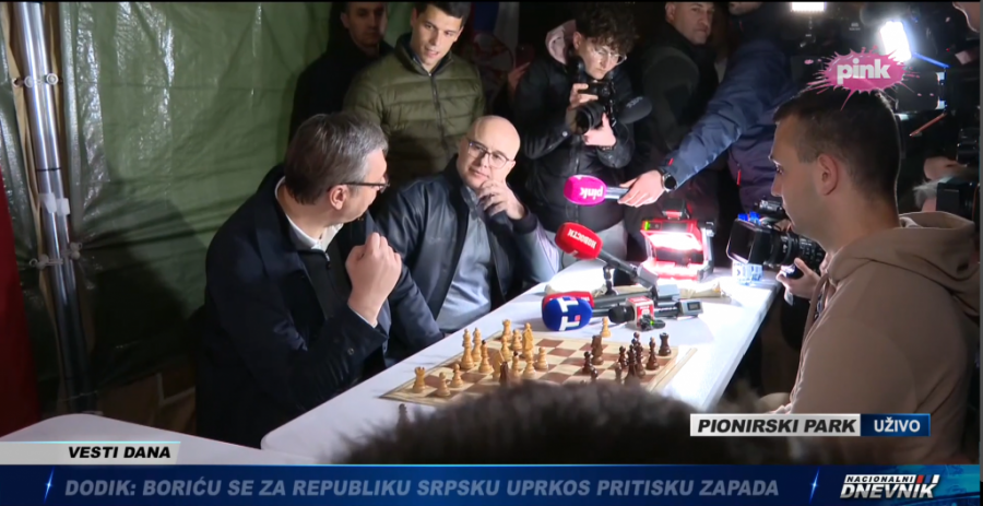 Vučić je nastavio partiju šaha sa drugim studentom i razgovor sa njima.