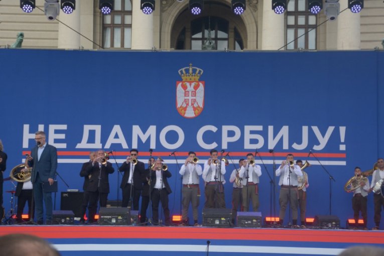 Ministar kulture u tehničkom mandatu Nikola Selaković izjavio je danas da je glavna poruka sabora "Ne damo Srbiju", koji se održava u centru Beograda, da Srbija ne sme da stane.