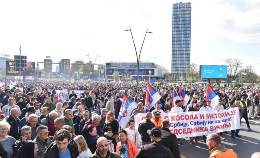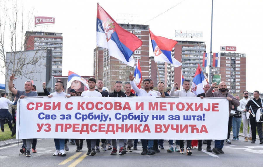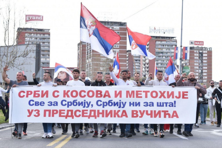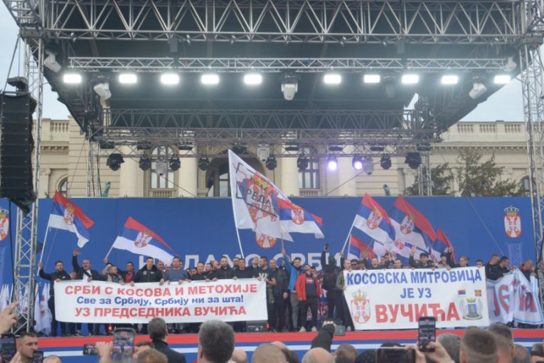 Nose transparente "Srbi sa Kosova i Metohije Sve za Srbiju, Srbiju ni za šta! Uz predsednika Vučića", "Kosovska Mitrovica je uz Vučića", "Zvečan je večan" i skandiraju "Kosovo je srce Srbije".