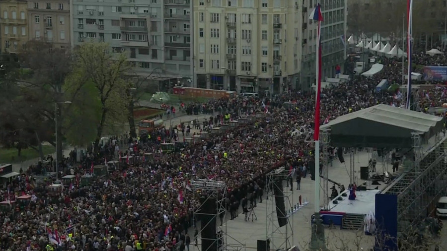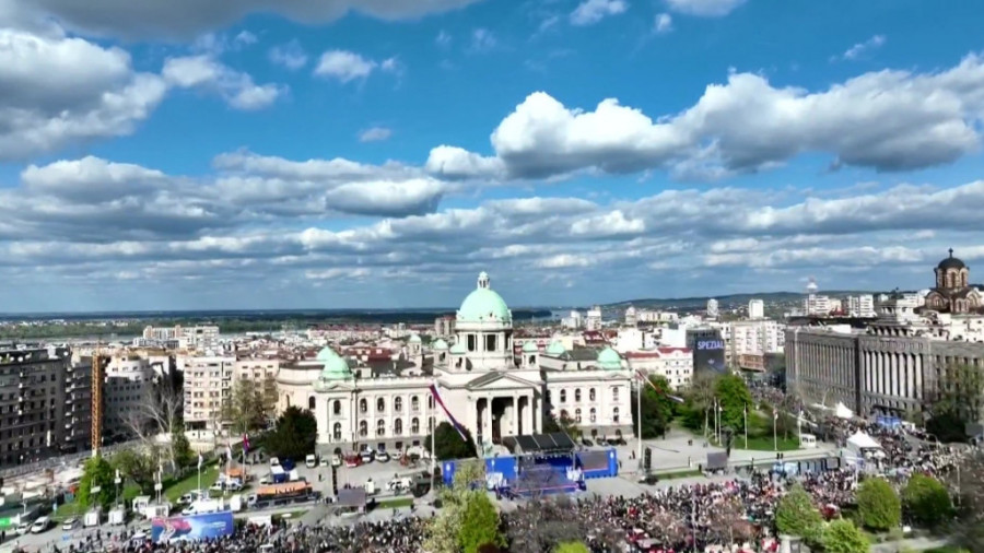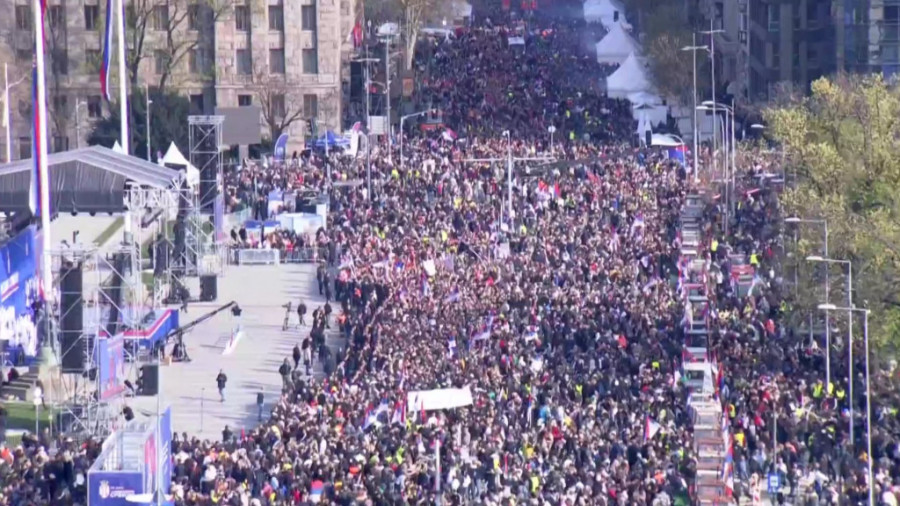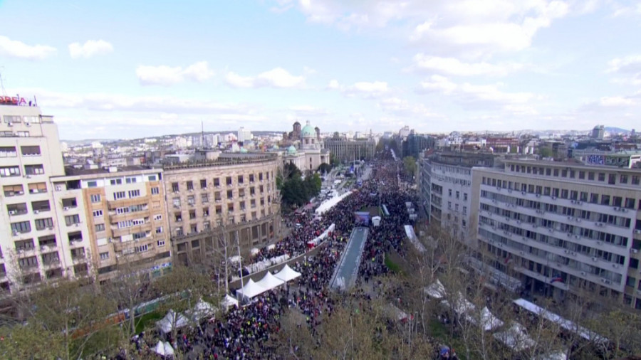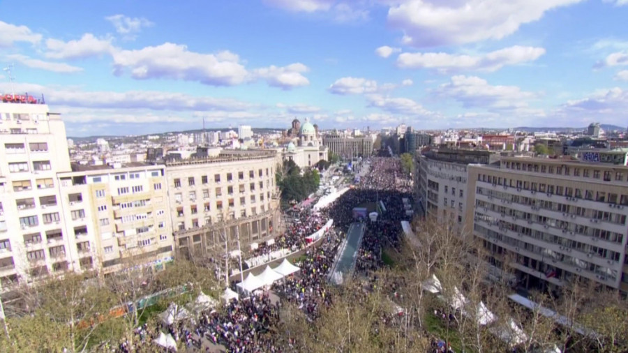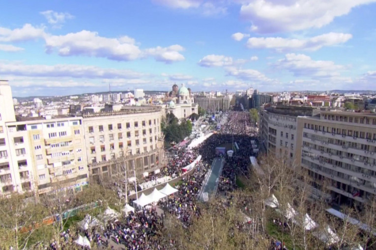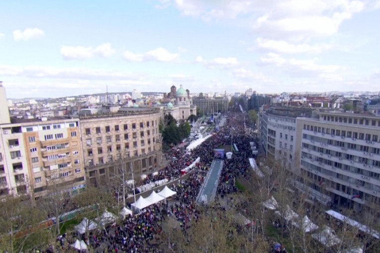 Na hiljade ljudi nalazi se u ovom trenutku ispred Skupštine Srbije. Dronovi su zabeležili spektakularne snimke - nema više igla gde da padne, a reke ljudi još pristižu.