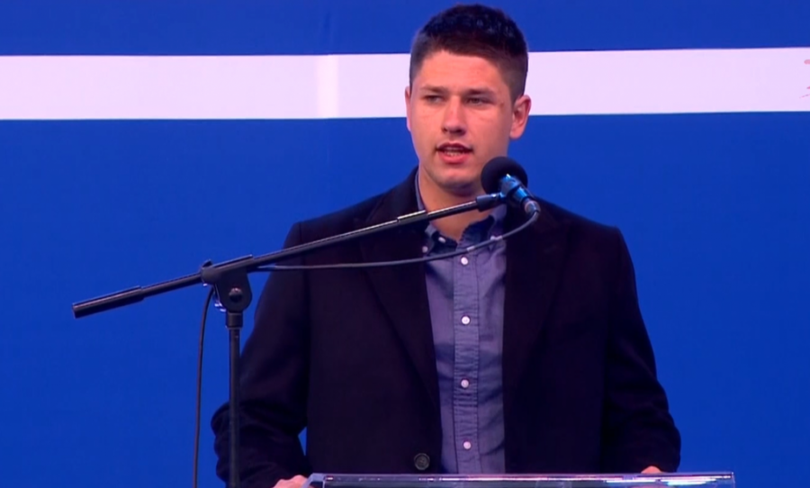 - Braćo i sestre, dragi prijatelje, za mene je velika čast što stojim večeras ispred vas u ime čitave moje generacije - koja je rešena da brani i odbrani našu zemlju. Nisam mogao da zamislim da ću pred sobom imati ovako veličanstven prizor, more neverovatnog broja ljudi i ovim putem želim iskreno da vam se u ime svih mladih zahvalim za nesebičnu podršku, ljubav i snagu.