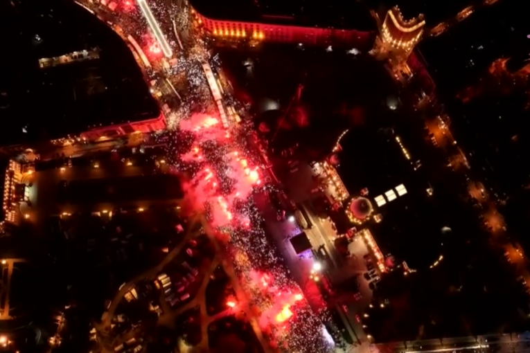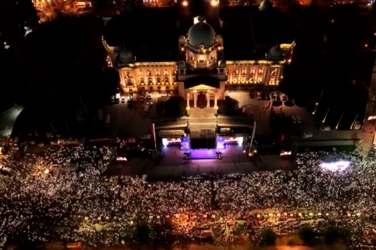 Prethodno su građani upalili svetla na telefonima i baklje, a Beograd je najlepše sijao: