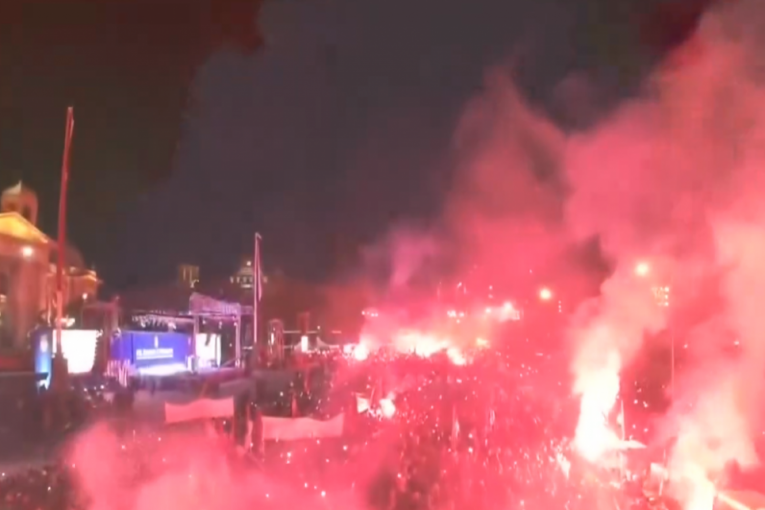 Veliki broj srpskih zastava zaviorio se na Trgu Nikole Pašića - zaista jedinstven prizor!