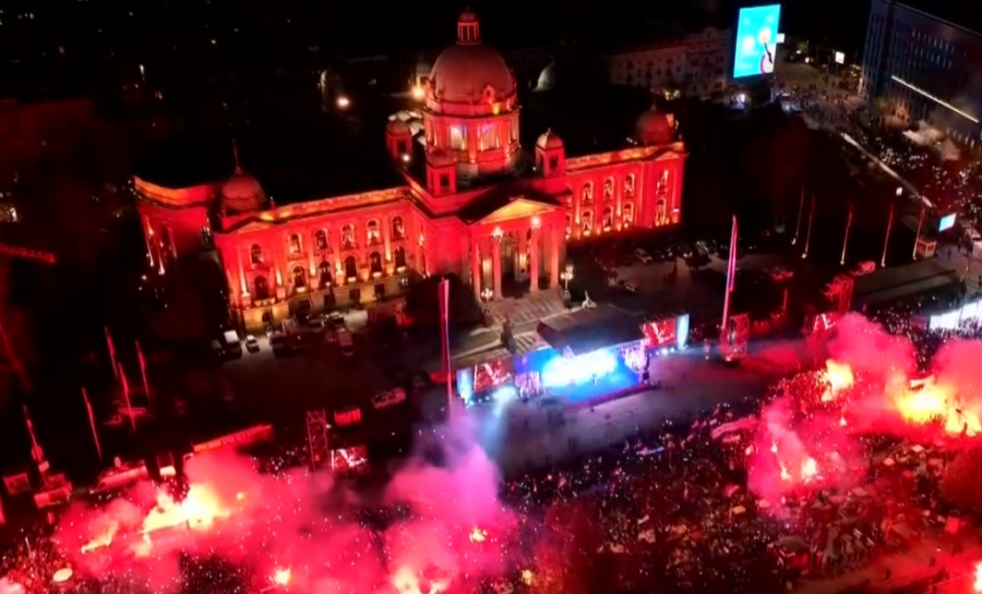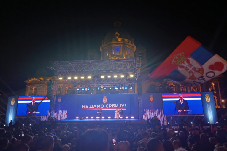 - Boriću se dok sam živ, čuvaću Srbiju zajedno sa vama i pobediće Srbija - poručio je Vučić.