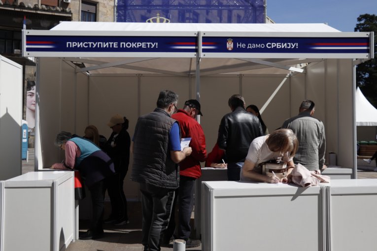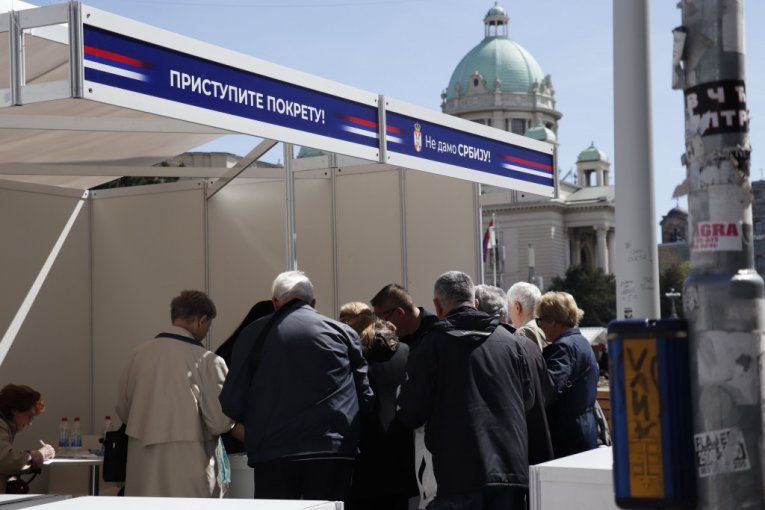 Trećeg dana sabora "Ne damo Srbiju", na platou ispred Doma Narodne skupštine Srbije, građani mogu da se informišu o svenarodnom pokretu čije je formiranje inicirao predsednik Srbije Aleksandar Vučić, kao i da se učlane u taj pokret.