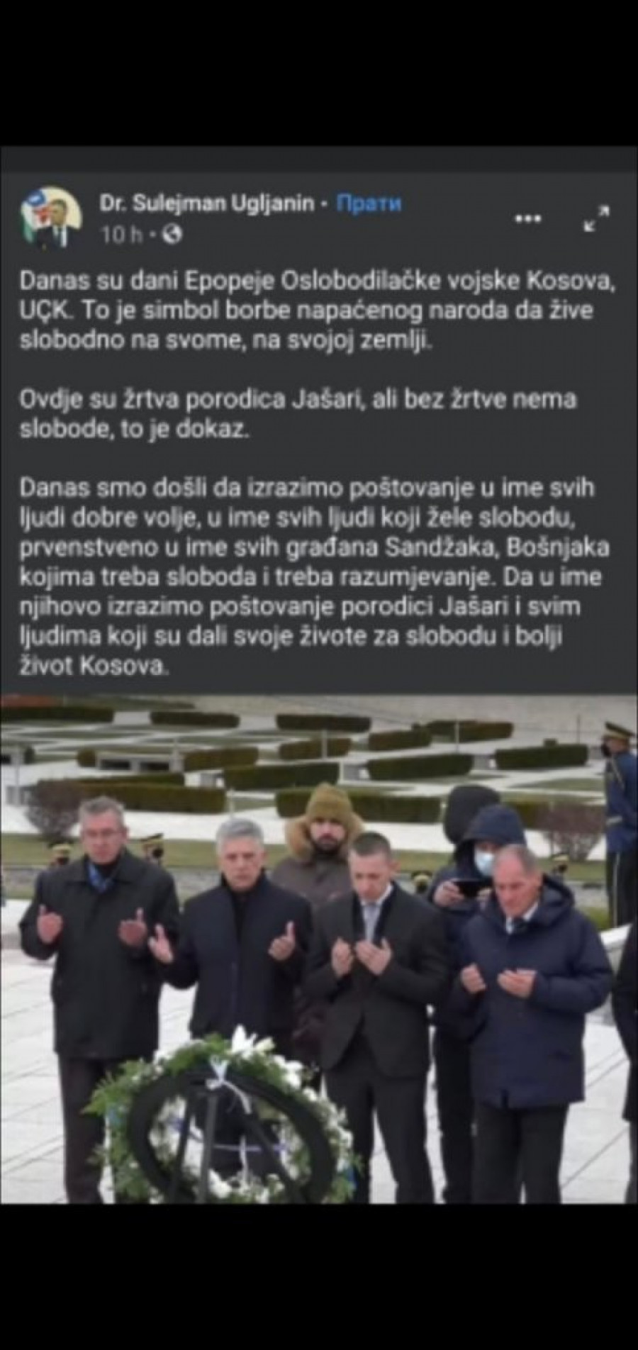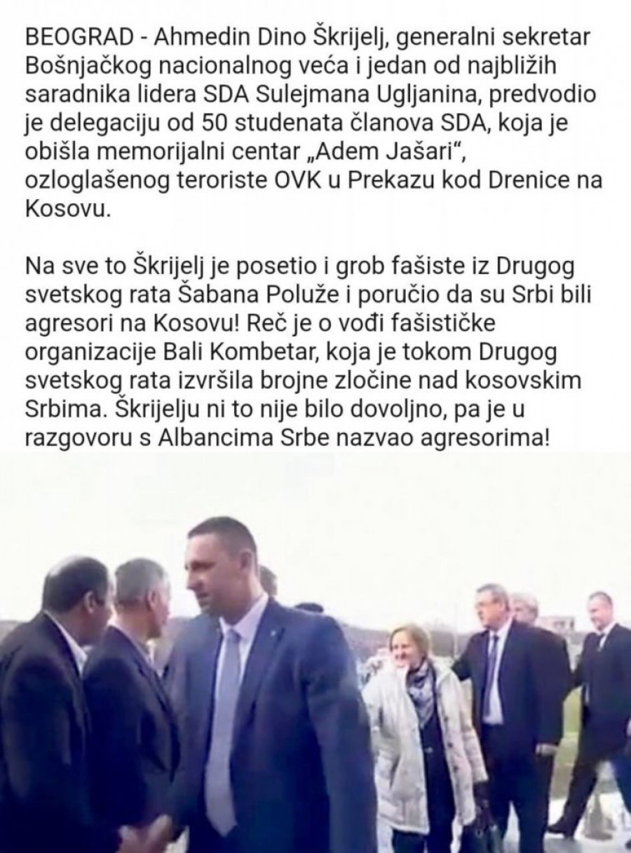 Ahmedin Škrijelj je, zajedno sa svojim liderom Ugljaninom, posećivao grob i memorijalni centar ozloglašenog Adema Jašarija.