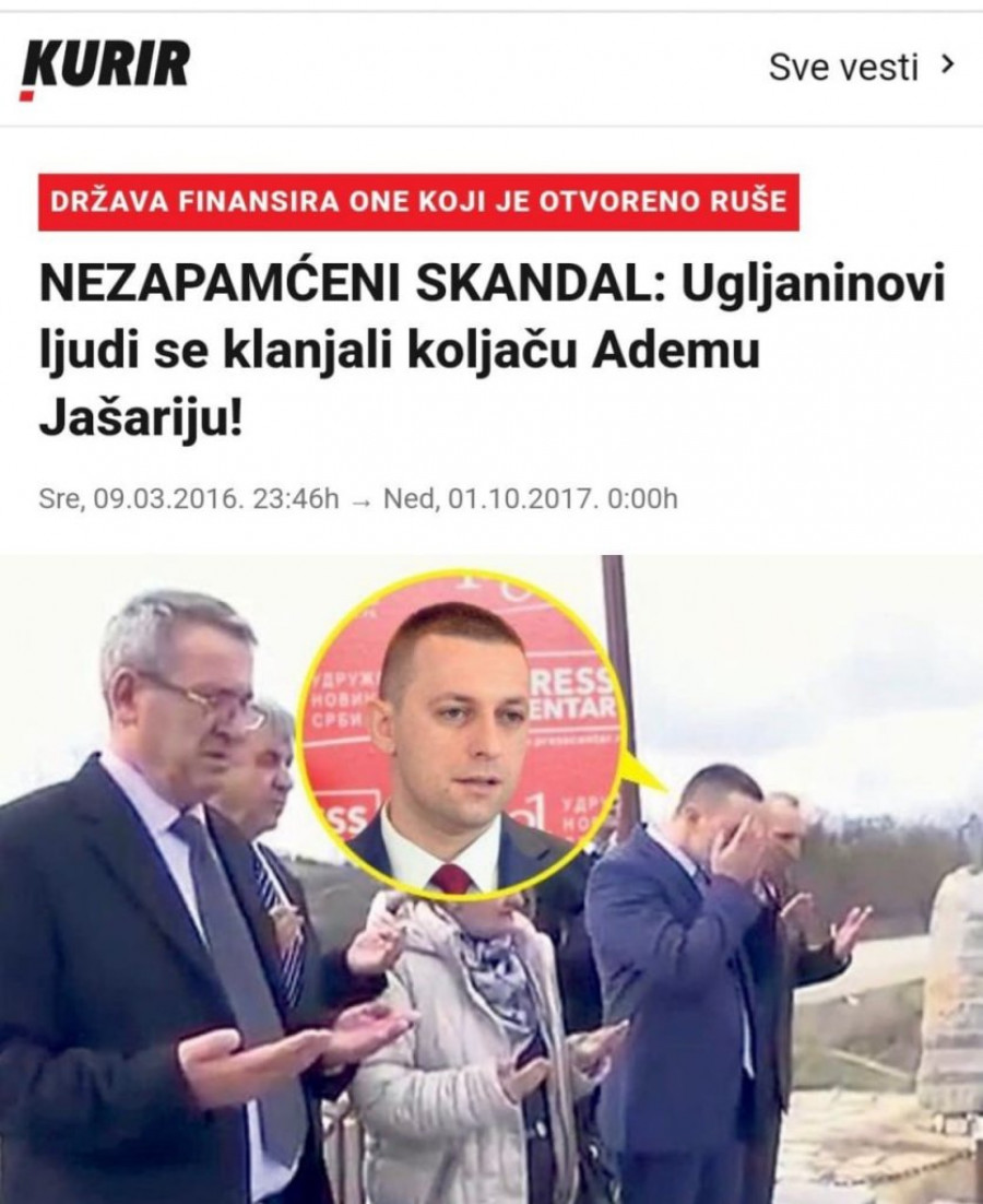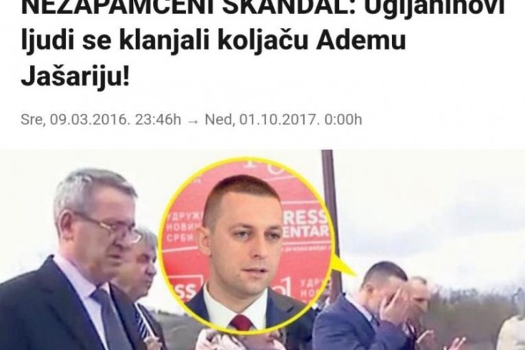 Dakle, čovek koji radi na autonomiji Sandžaka i prvi čovek Sulejmana Ugljanina juče je bio sa opozicionim političarem DS Srđanom Milivojevićem u Novom Pazara i isti su ismislili ceo scenario, okitili grad tranparentima o Naseru Oriću, Kosovu, zastavama ljiljana, osmislili da stidenti u blokiraju magistralni put Novi Pazar - Raška...