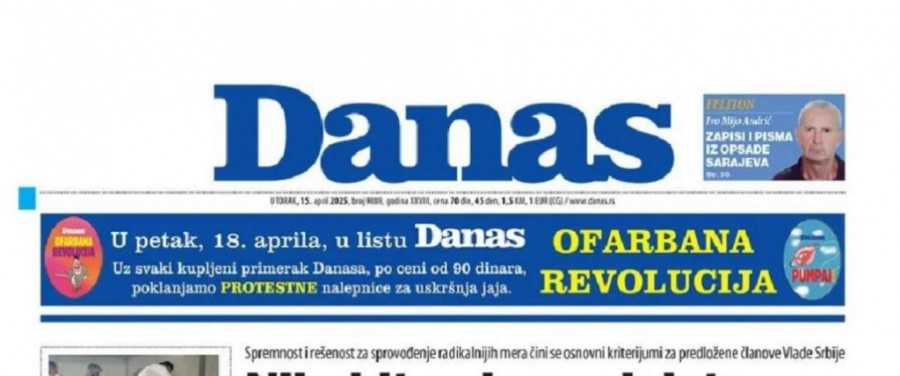 Opozicioni list "Danas" u svom štampanom izdanju najavljuje uz kupovinu lista na poklon protestne nalepnice za uskršnja jaja!