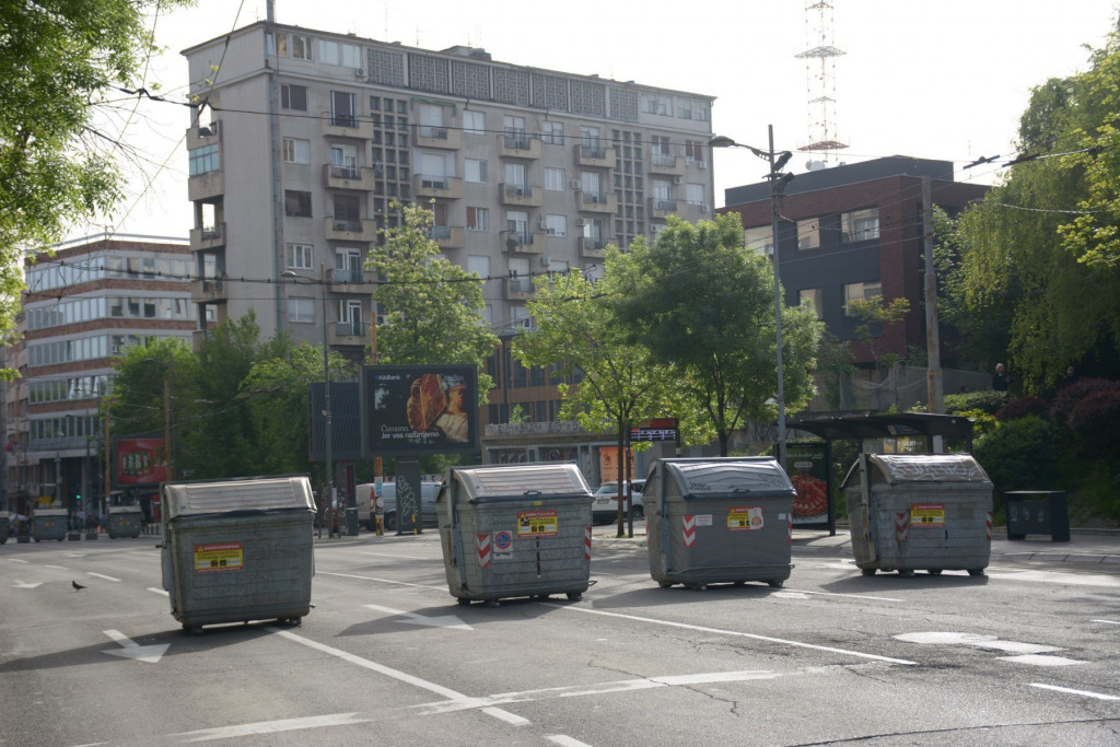 I dalje je kontejnerima blokirana raskrsnica Takovske i Svetogorske, kao i raskrsnica Svetogorske i Ilije Garašanina, a kontejneri su postavljeni i u Takovskoj ulici kod zgrade RTS-a i kod Glavne pošte.