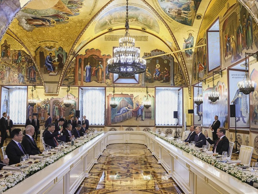 Predsednik Srbije Aleksandar Vučić prisustvovao je večeras u Kremlju svečanojvečeri koju je u čast šefova stranih delegacija koje su stigle na obeležavanje 80. godišnjice pobede nad fašizmom priredio predsednik Ruske Federacije Vladimir Putin.