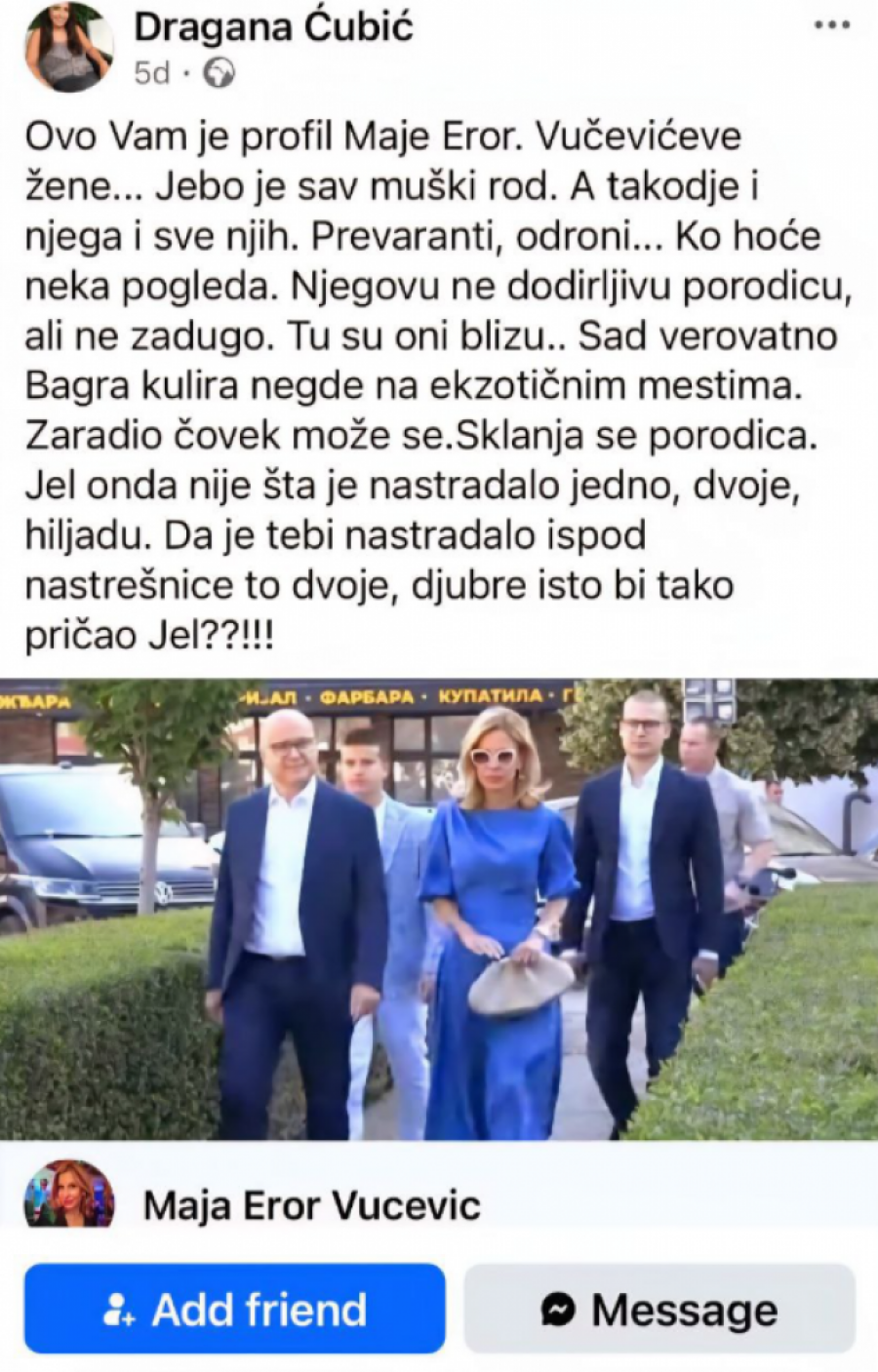 JEZIVE PRETNJE PORODICI MILOŠA VUČEVIĆA! Simpatizerka Miše Bačulova priziva im smrt! (FOTO)