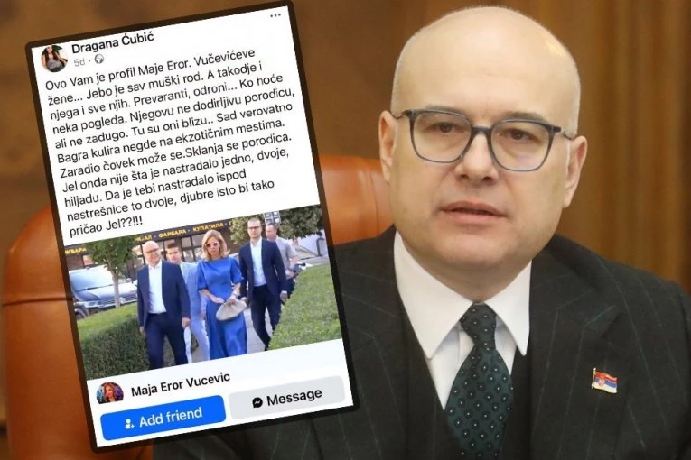 Ona je na društvenoj mreži Fejsbuk objavila profil žene prvog čoveka SNS-a, iznevši ozbiljne pretnje i uvrede na račun bivšeg premijera, njegove supruge i sinova.