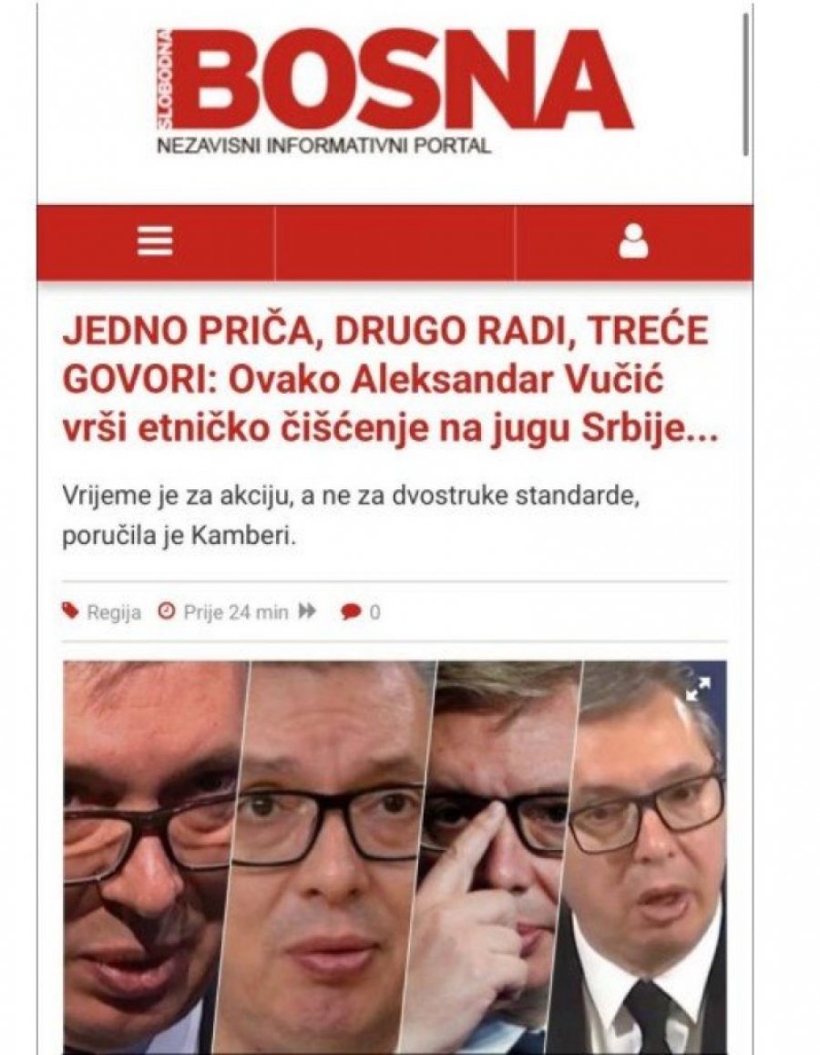 Da je u pitanju udružena prljava kampanja širenja laži u cilju podrške delovanju blokadera i njihovom jurišu na fotelje pokazuje i pisanje glasila "Slobodna Bosna" koje takođe udara na Vučića ponavljajući gorepomenute laži o "etničkom čišćenju" na jugu Srbije.