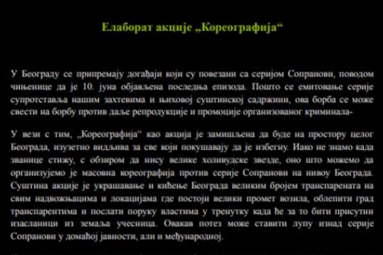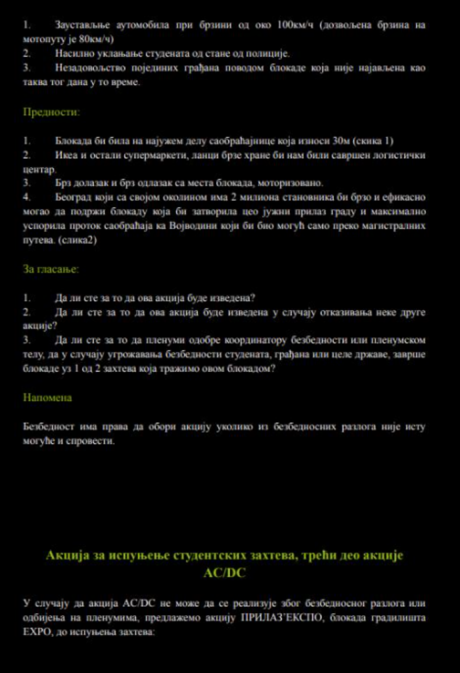 A u spisima se posebno pominje "koreografija", o kojoj pišu u šiframa, ali je očigledno se da je reč o postavljanju parola protiv Ekspa po Beogradu, kada budu dolazili gosti. Blokaderi-foteljaši postaju sve agresivniji što se vidi i po napadu na studenta koji želi da uči Miloša Pavlovića. Podsetimo, ovaj napad se dogodio u sredu uveče.