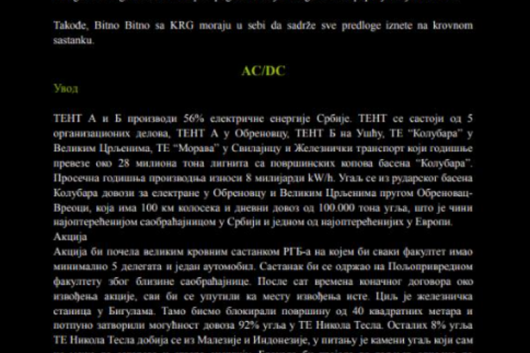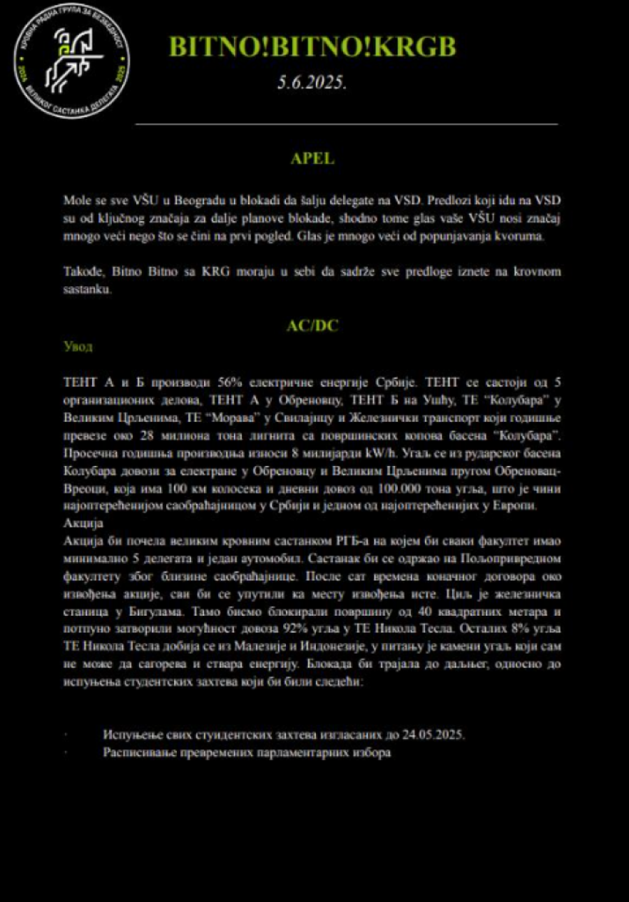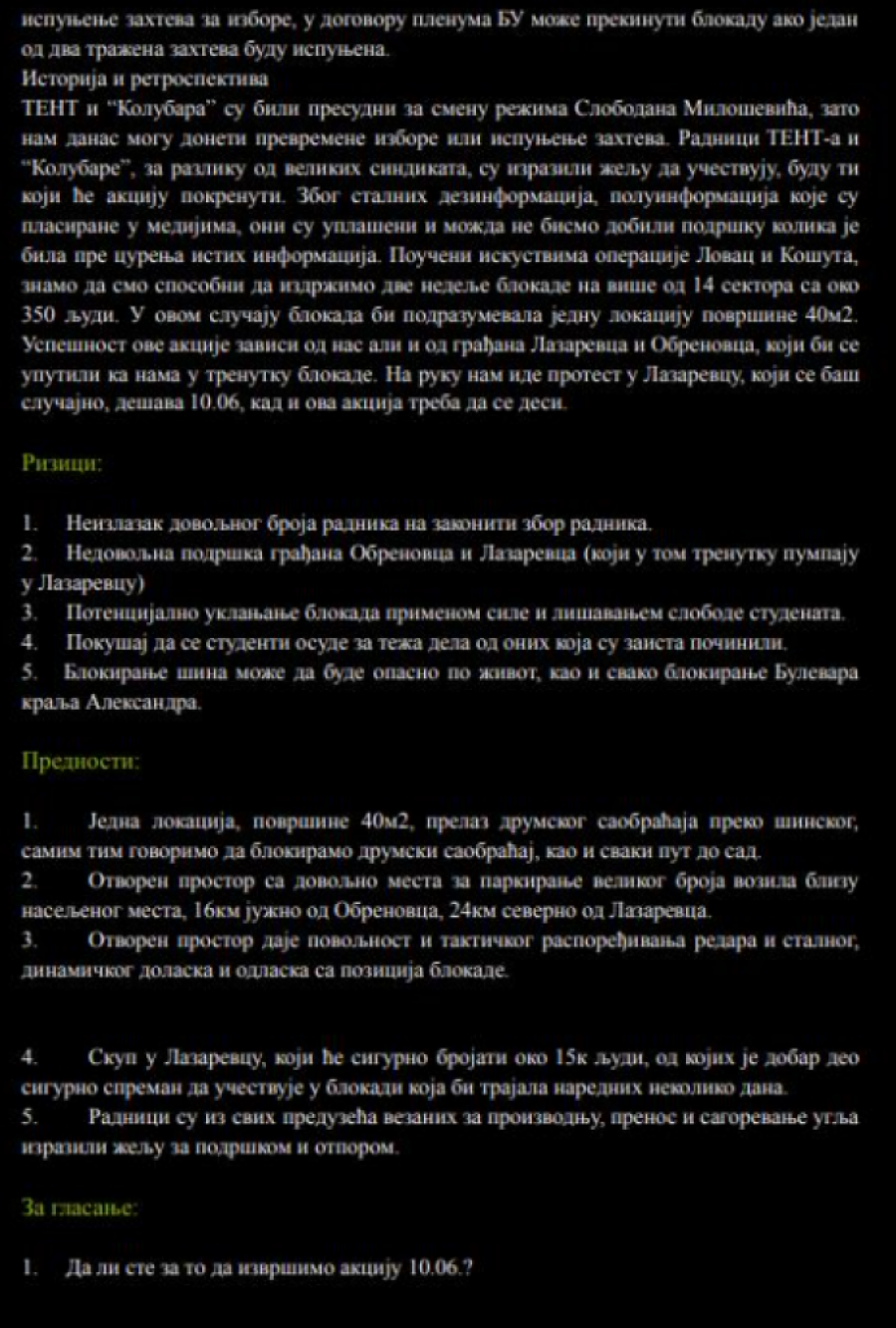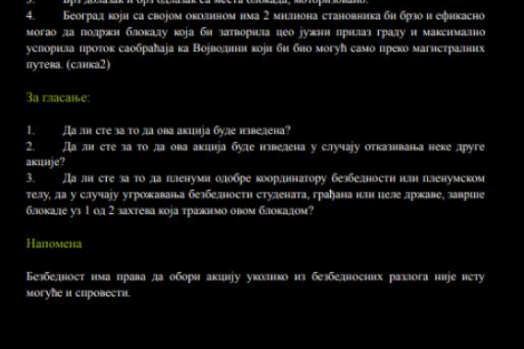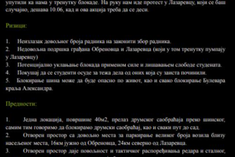 Međutim, prema unapred određenom programu, studenti-foteljaši su planirali da izglasaju "akciju da 10.6. blokiraju prugu, kuda se vozi ugalj", što se može videti iz njihovog dokumenta.