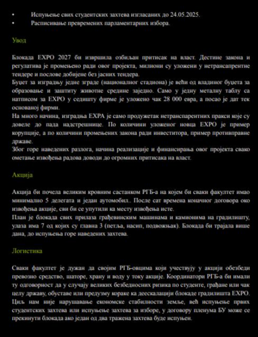 Za slučaj da im ta "akcija" propadne, "plan B" je bio blokada Bubanj potoka. I za to su spremili alternativnu varijantu, a to je blokada prilaza Ekspu. Sve je jasno, reč je o čistim terorističkim aktima.