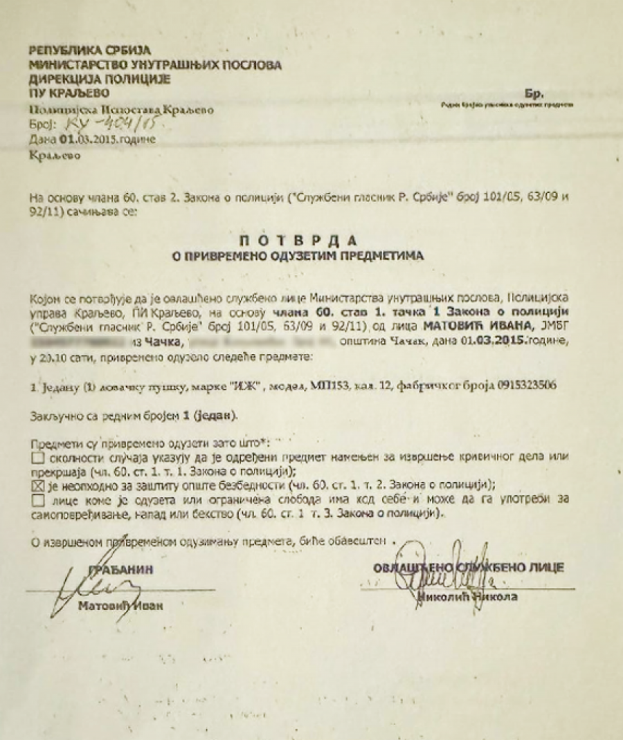 Predstavnik Udruženja starosedelaca Kraljeva Ivan Matović priveden je 15. maja nakon tuče u Skupštini grada Kraljevo koja je izbila između obezbeđenja i odbornika opozicije. Sutradan je pušten na slobodu iako je sklon nasilničkom ponašanju s obzirom na to da je 2015. godine protiv njega podnesena krivična prijava za nasilje u porodici.