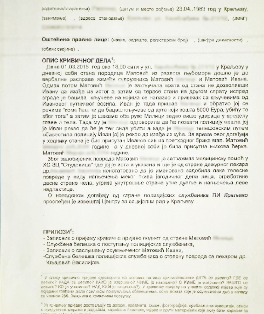 Krivična prijava za nasilje u porodici je podnesena uz obrazloženje da je napao svoju suprugu kojoj je naneo lakše telesne povrede zbog čega joj je ukazana lekarska pomoć. Kako se navodi u lekarskom izveštaju, supruga Matovića imala je vidne povrede u vidu nagnječenja mekog tkiva jagodičnog dela lica, ogrebotina desne strane čela, ugriz unutrašnje strane desne duplje i nagnječenja leve nadlaktice.