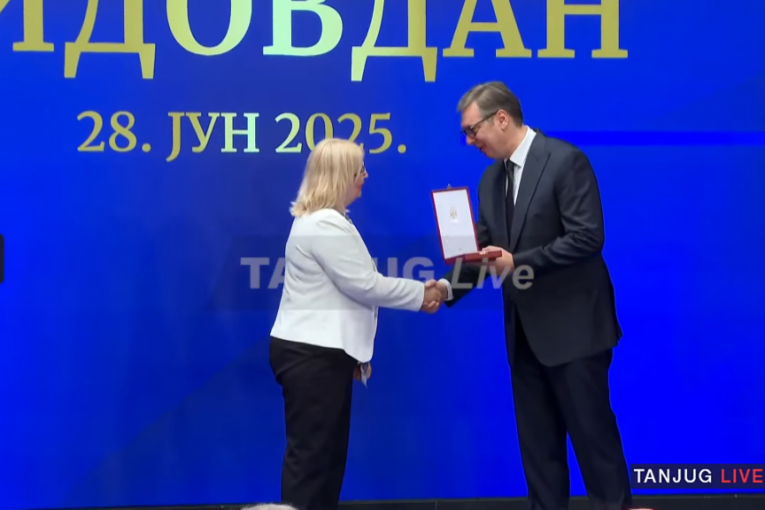 Predsednik Srbije Aleksandar Vučić danas uručuje Vidovdanska odlikovanja zaslužnim pojedincima i institucijama na svečanosti koja je počela u 10 časova u Palati Srbija.