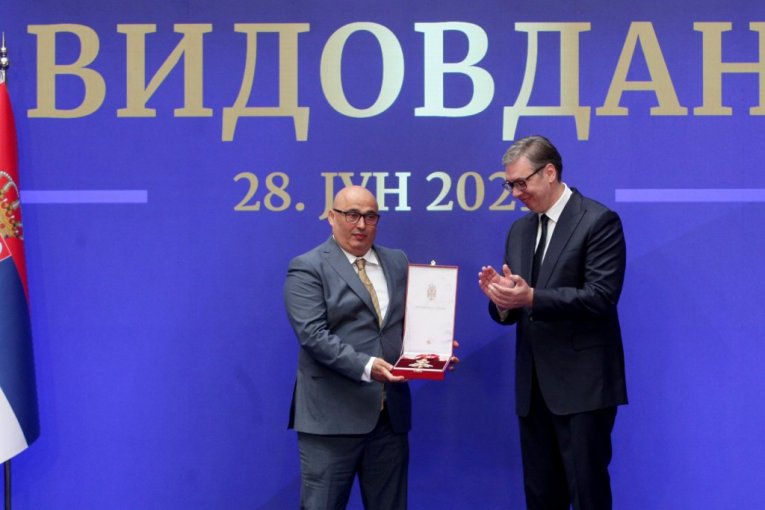 Predsednik Srbije Aleksandar Vučić uručio je danas u Palati Srbija tradicionalna Vidovdanska odlikovanja zaslužnim pojedincima i institucijama koji su se istakli u oblasti nauke, umetnosti, medicine, sporta, novinarstva, privrede i društvene hrabrosti.
