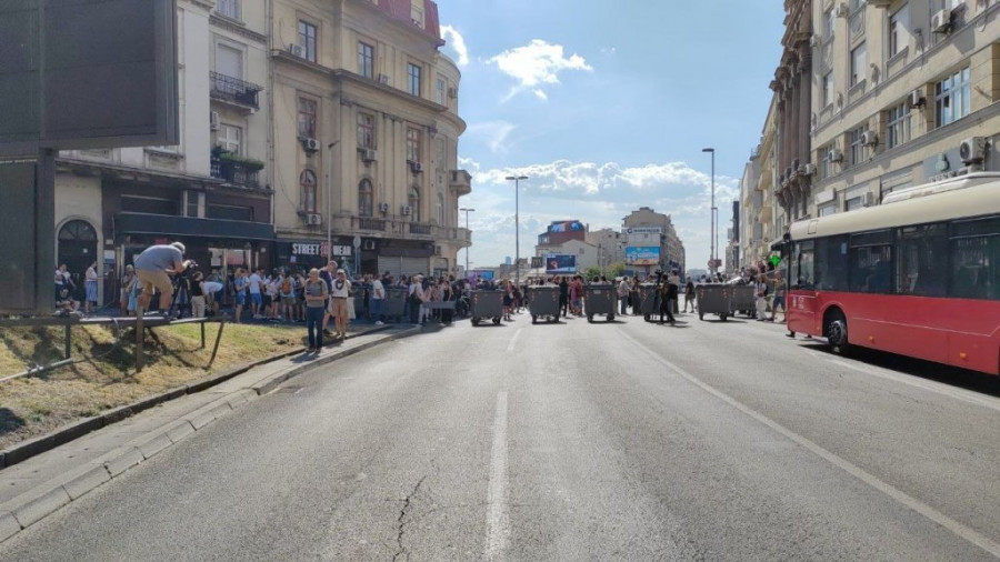 Podsećamo, male grupe studenata koji blokiraju fakultete i opozicionara, posle propasti protesta na Vidovdan, sinoć su kontejnerima i ogradama blokirale više raskrsnica i mostova u Beogradu i drugim gradovima, a kao razlog blokada naveli su privođenja više studenata osumnjičenih za planiranje nasilne promene ustavnog uređenja i pružanje podrške uhapšenima koji su učestvovali u nasilju posle protesta koji su u subotu organizovali studenti koji blokiraju fakultete.