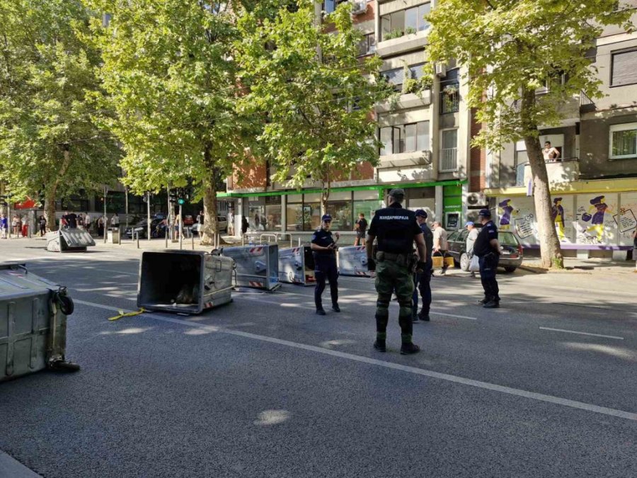 Kod Mašinskog fakulteta počela je blokada oko sedam sati, a postavljeni su kontejneri, zbog kojih je obustavljen saobraćaj u Ulici kraljice Marije.
