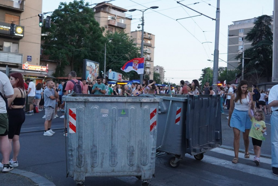 Slična situacija zabeležena je jutros i u Zemunu. Na delu puta ka centru grada, kod Avijatičarskog trga, postavljeni su kontejneri koji blokiraju saobraćaj, a takođe nekolicina građana blokira saobraćaj neprestanim prelaženjem ulice.