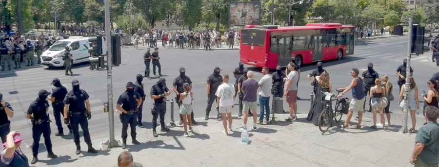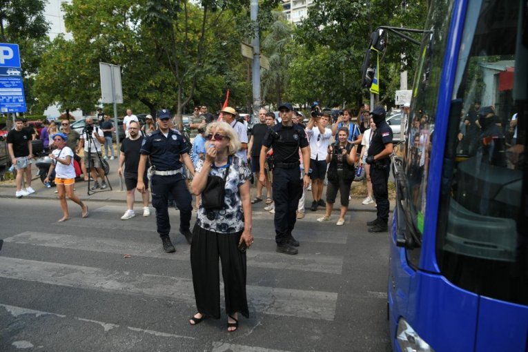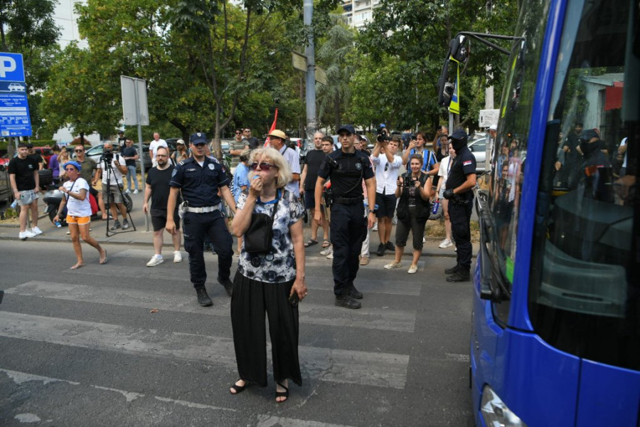 Manja grupa ljudi okupila se ispred Palate pravde protestujući zbog hapšenja anesteziologa iz Beograda koji je uhapšen posle protesta na Vidovdan. Saobraćaj je blokiran i u Glavnoj ulici i na Avijatičarskom trgu u Zemunu odakle se linije javnog prevoza preusmeravaju.