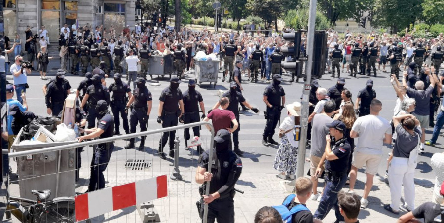 Studenti u blokadi Filozofskog fakulteta pozvali su na protest jer je, kako tvrde, njihov kolega Aleksa Stanković, "sinoć napadnut od strane policije ispred svoje kuće". Oni su potom krenuli u protestnu šetnju prema Brankovom mostu koji su nakratko blokirali, a zatim ka Savamali usput obarajući kontejnere.
