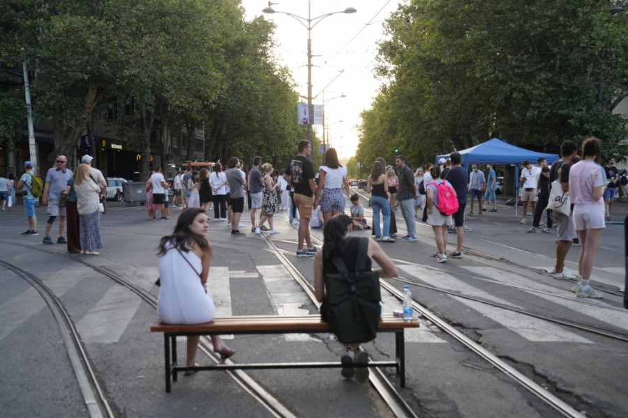 Na Banovom brdu, u Požeškoj ulici - jednoj od najprometnijih saobraćajnica u ovom delu grada - blokaderi ometaju saobraćaj tako što neprekidno prelaze jedan te isti pešački prelaz. Zbog toga su zaustavljena i vozila i linije javnog prevoza, što izaziva kašnjenja građana na posao, kod lekara i u vrtiće.