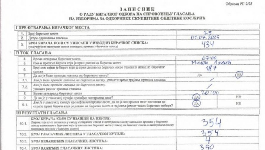 POBEDA ČISTA KAO SUZA! Stigli i zvanični rezultati - RIK objavio zapisnik iz Kosjerića! (FOTO)