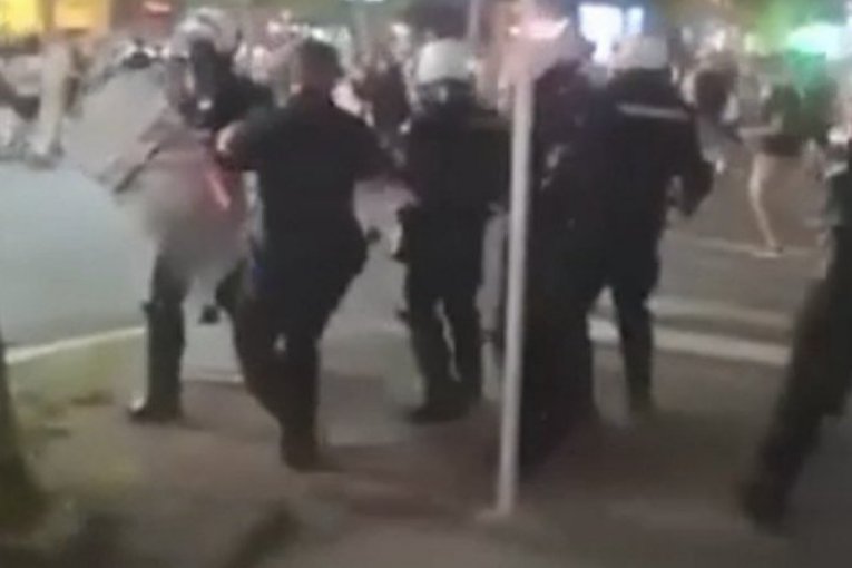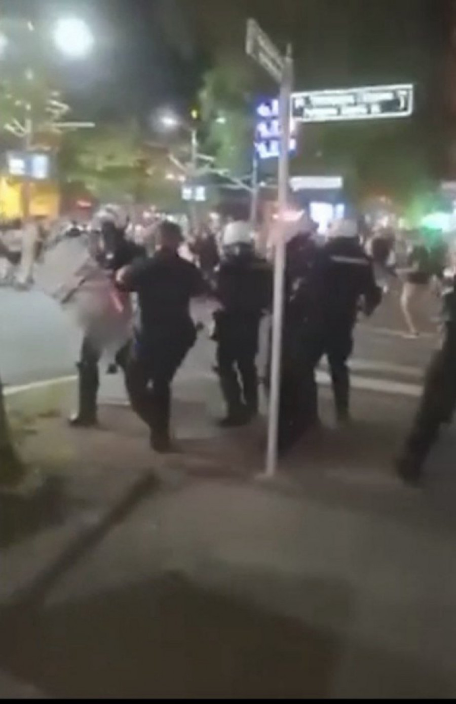 Do sukoba je došlo oko 23 sata kad je policija intervenisala i počela da hapsi demonstrante koji su gurali kontejnere na kolovoz kako bi postavili barikade.