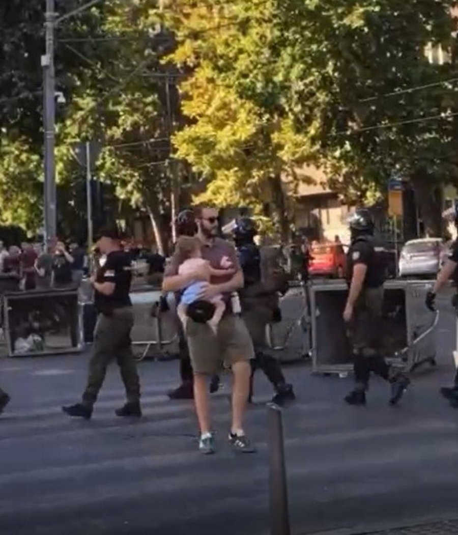 Po pešačkom prelazu je hodao i sa kordonom, pa može da se izvuče zaključak da je bebu koristio i kao štit u slučaju da policija mora da reaguje. Ovakvo ponašanje je za svaku osudu, a posatvlja se pitanje da li će nadležna služba da reaguje na to što je beba bila ugrožena.