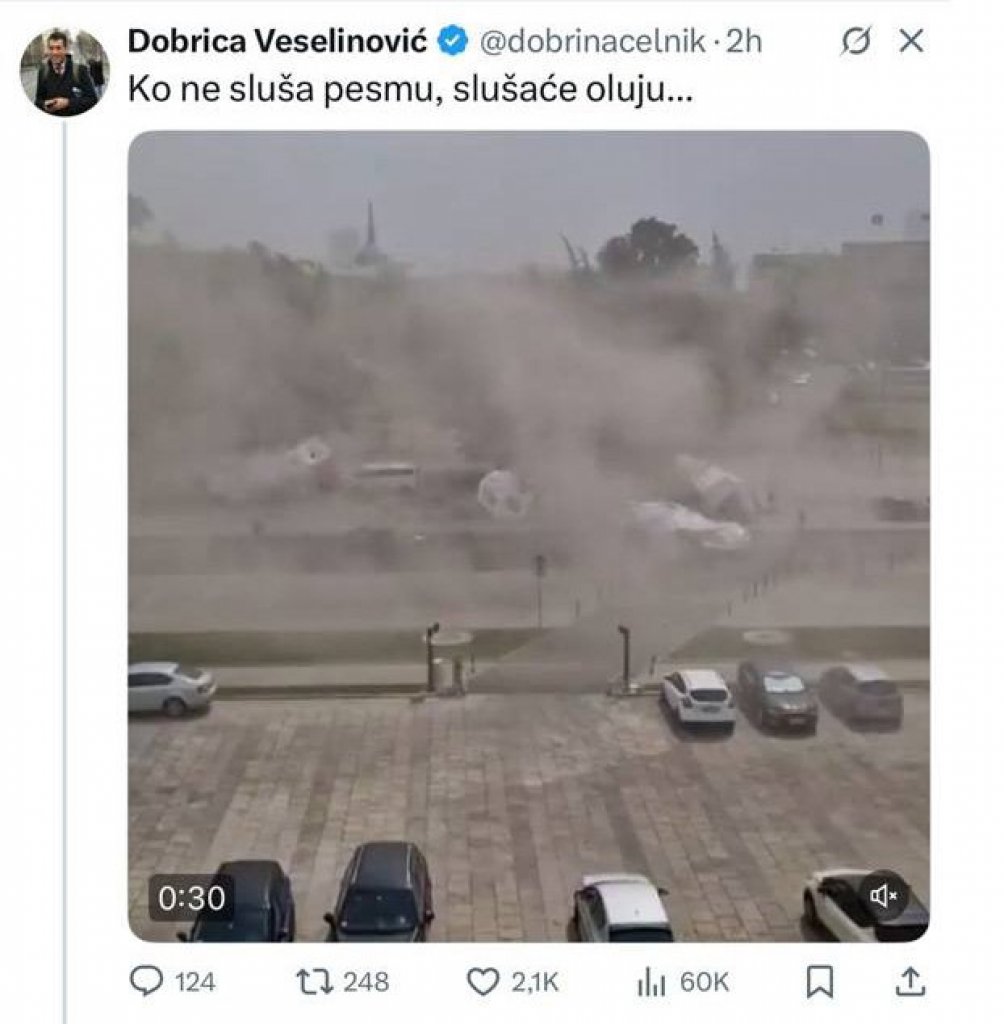 - Ko ne sluša pesmu, slušaće oluju... - naveo je Veselinović u objavi na mrežama.