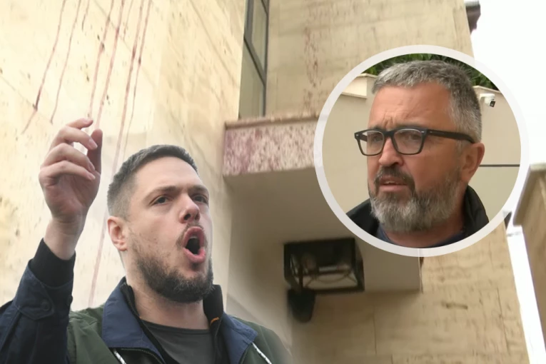 - Evo šta su uradili. Oni su celu kapiju izgađali nekom žutom farbom. Vikali su, tu je i neka kesa, ja je nisam dirao. Policajci sada dolaze da izvrše uviđaj. Crvena farba i neka druga supstanca su svuda, vidite i izbušeni baloni, valjda su u tim balonima držali tu farbu i tu supstancu - kazao je.