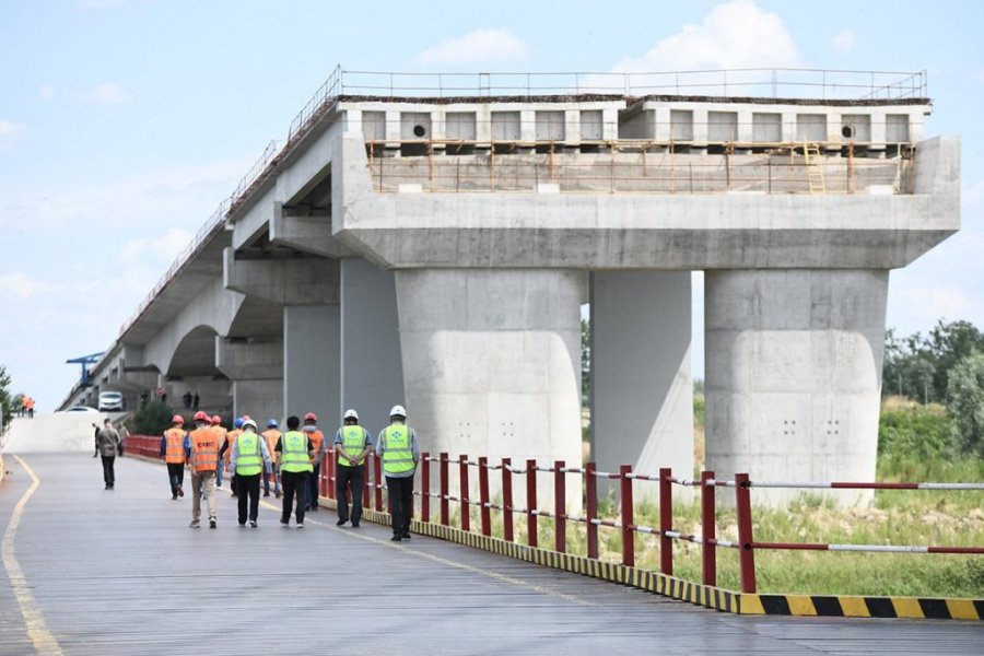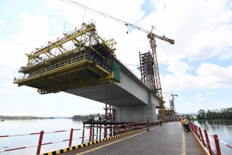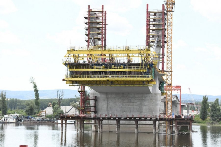 Na gradilištu je angažovano skoro 1.000 radnika, a izvođač radova je kineska kompanija China Road and Bridge Corporation. Trenutno se završavaju elementi glavne i prilazne konstrukcije mosta, ugrađuju kablovi, piloni i granitni ivičnjaci.