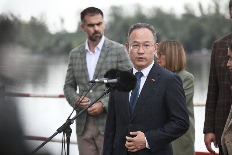 - Hvala predsediče. Predsednik je lider koji ima veliki vid koji je fokusiran na izgradnju. Prethodni 10 godina vodio Srbiju i narod da izgradi celu mrežu puteva više nego pre 50 godina. Danas sam tu kada gledam na most, ja sam ponosan sa našim kineskim firmama. Pošto ovaj projekat ubuhvata i tunel i veliki most preko Dunava, ipak postoje poteškoće ali verujem da uz trud između kineskih i srpskih radnika mi ćemo ostvariti novu tačku na čeličnom prijateljstvu između dve zemlje. Ja verujem uz vođstvo predsenika Si Đinpinga i predsenika Vučića da ćemo nastaviti da gradimo, hvala svima.