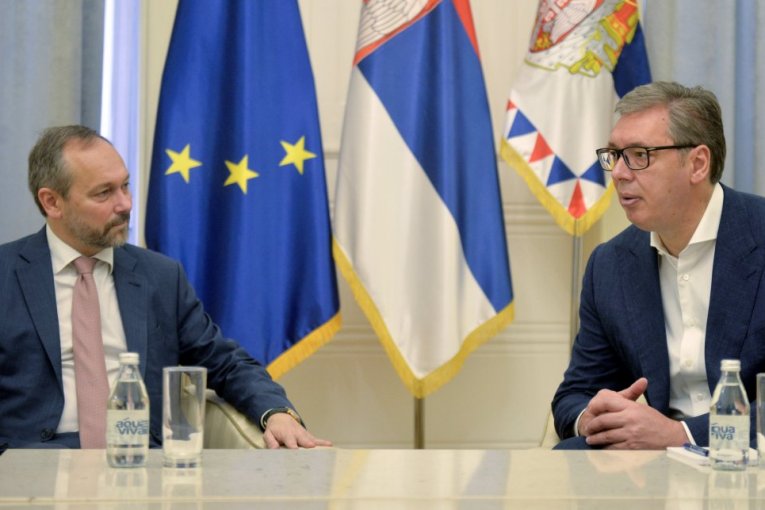 Predsednik Srbije Aleksandar Vučić primio je danas u oproštajnu posetu šefa Delegacije Evropske unije u Srbiji Emanuelea Žiofrea.