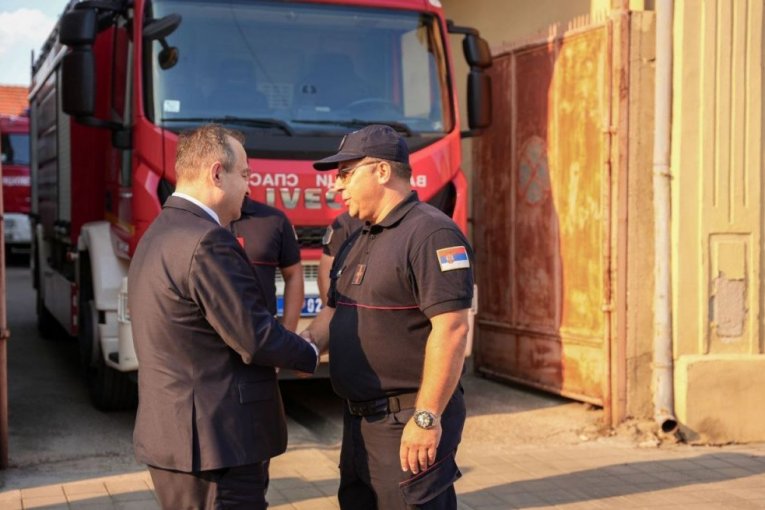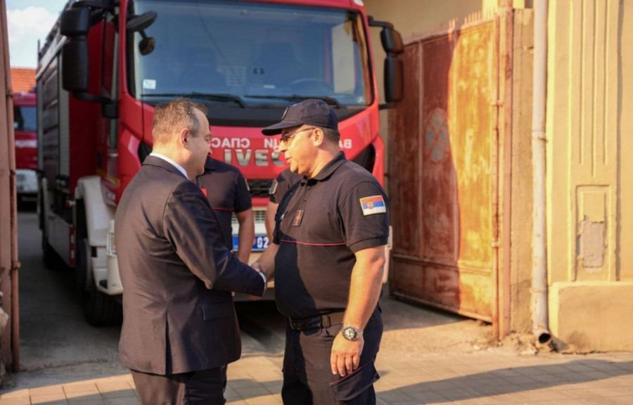 - Prilikom naše posete aktivna su i dva požara ovde na ovoj teritoriji. Takođe i njima nedostaje ljudstvo. Naš zadatak je u narednom periodu popunjavanje svih nedostajućih mesta i bolje opremanje naših jedinica, bilo da je reč o policiji, bilo da je reč o vatrogascima-spasiocima, za sve zadatke koji nas čekaju u narednom periodu - objasnio je ministar Dačić.
