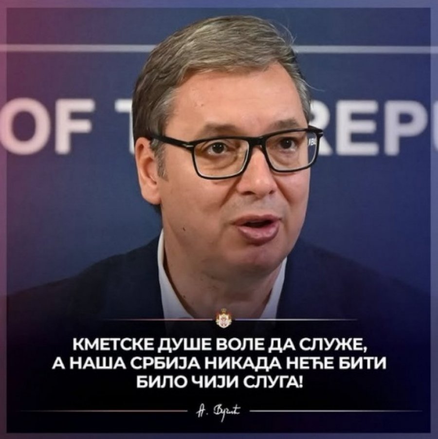 - Kmetske duše vole da služe, a naša Srbija nikada neće biti bilo čiji sluga! - stoji u objavi.
