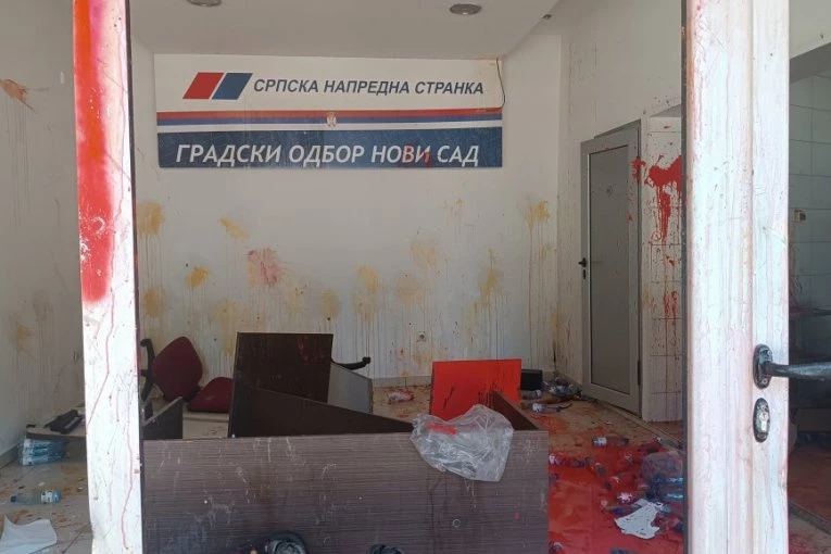 Prostorije Srpske napredne stranke demolirane su na tri lokacije u Novom Sadu u toku sinoćnih protesta.