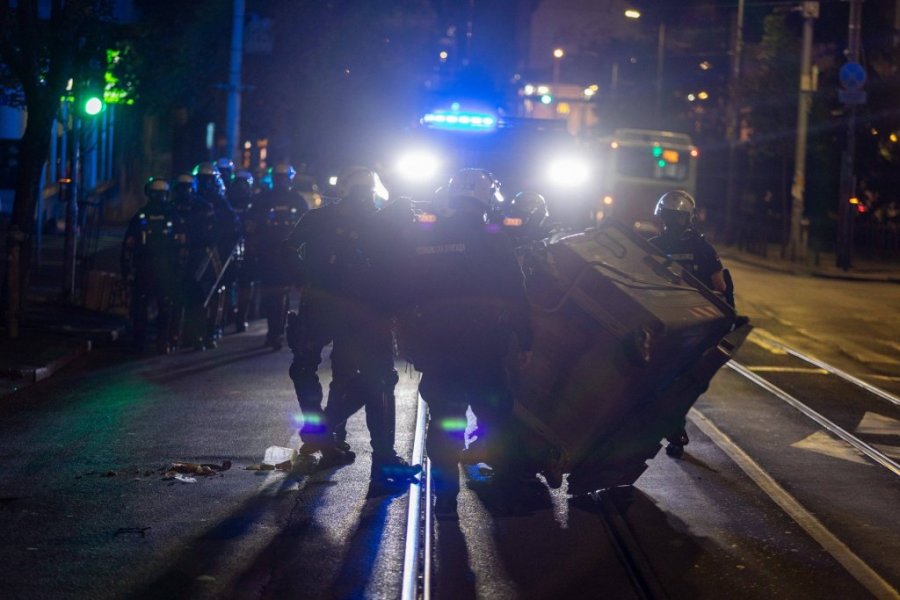 U Beogradskoj ulici su zapalili kontejnere, bacali kamenice, pirotehniku i flaše na policijske snage, dok su vatrogasci bili sprečeni da intervenišu. Policija je odgovorila upotrebom suzavca i specijalnih vozila za kontrolu mase kako bi rasterala okupljene. Ovi događaji su izazvali zabrinutost zbog mogućnosti daljeg nasilja i destabilizacije situacije.