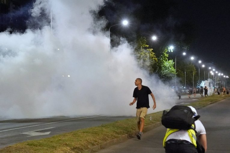 Blokaderi bacaju topovske udare i petarde na policiju na Novom Beogradu. Vlada opšti haos.