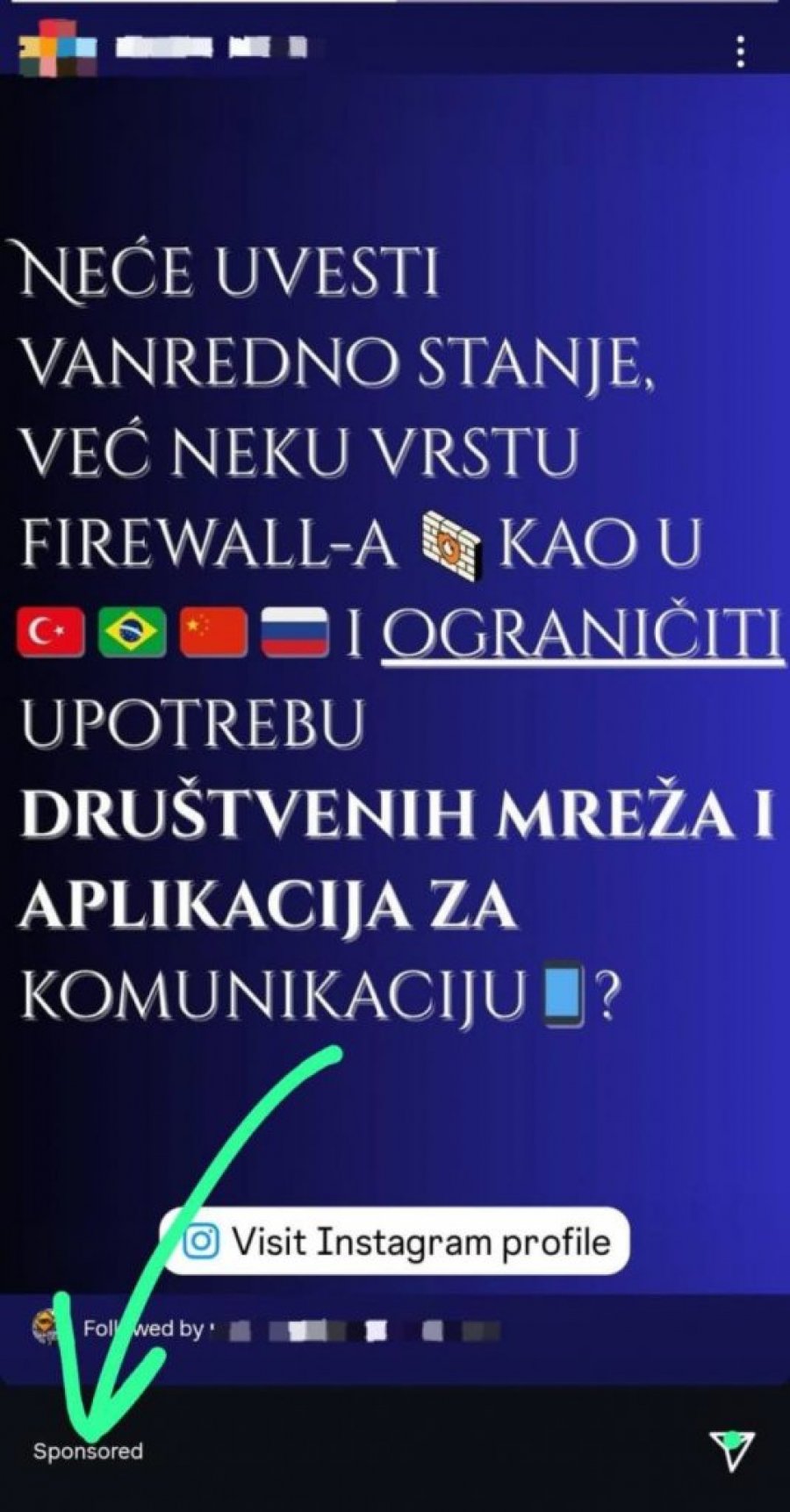 Ovoga puta šire lažne i tendenciozne tvrdnje da će u našoj zemlji biti uveden favol poput onog u Turskoj, Rusiji ili Kini, navodno da bi se ograničila upotreba aplikacija i društvenih mreža. Na prvi pogled, ništa novo - još jedan pokušaj da se među građanima izazove panika. Ali problem nastaje kada se vidi da je reč o sponzorisanom sadržaju, dakle o plaćenom oglasu!